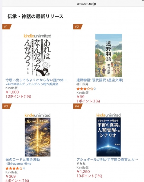 大晦日にリリースされた、『光のコードと黄金波動』のシリーズ編No.7が伝承・神話の最新リリースで3位にランクインしたようです。 少しでも、みなさんの集合意識に光が入りますよう祈っております。 ありがとうございます。