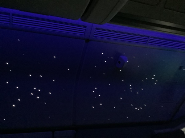 エミレーツの機内天井には、まるでプラネタリウムのような美しさもありましたよ。