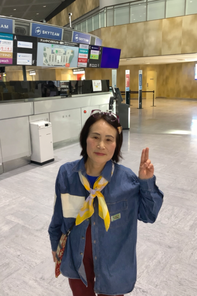 今,成田国際空港のチェックインの為に並んでいます。